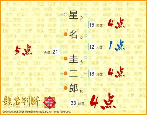 星名圭二郎さんの総運は33画の4点!