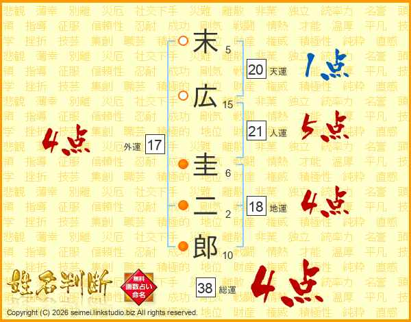 末広圭二郎さんの総運は38画の4点!