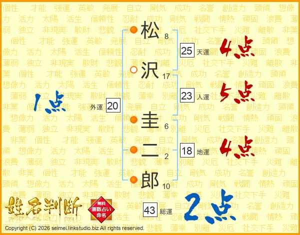 松(8画)沢(17画) 圭(6画)二(2画)郎(10画)