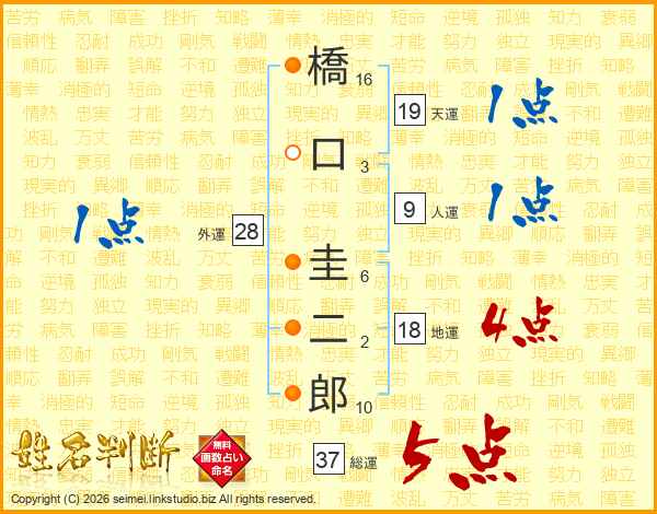 橋口圭二郎さんの総運は37画の5点!