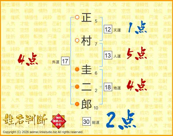 正村圭二郎さんの総運は30画の2点!