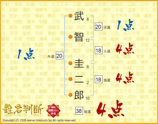 武智圭二郎さんの総運は38画の4点!