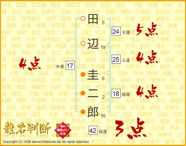 田辺圭二郎さんの外運は17画の4点!