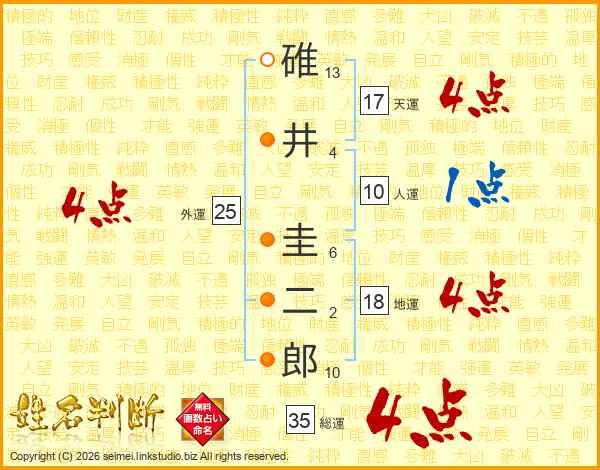 碓井圭二郎さんの総運は35画の4点!