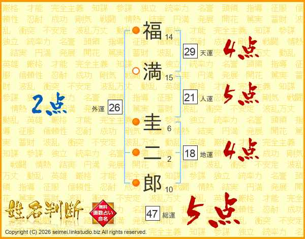 福満圭二郎さんの総運は47画の5点!