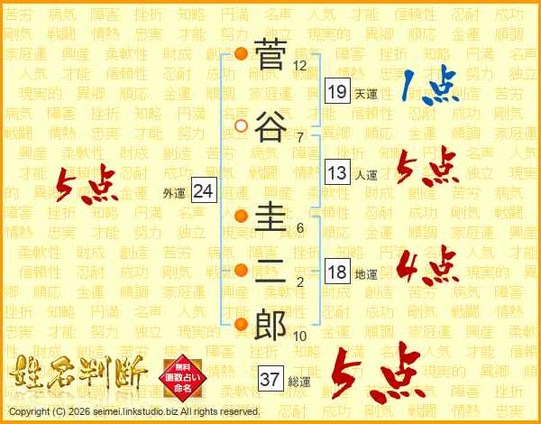菅谷圭二郎さんの総運は37画の5点!
