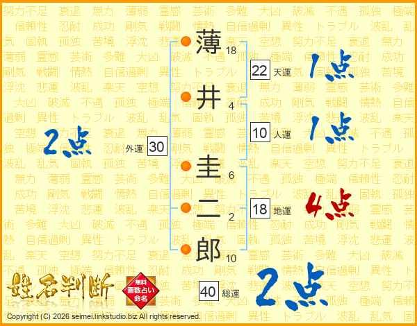 薄井圭二郎さんの総運は40画の2点!