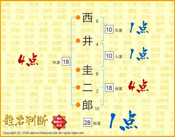 西井圭二郎さんの総運は28画の1点!