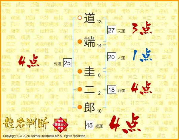 道端圭二郎さんの総運は45画の4点!