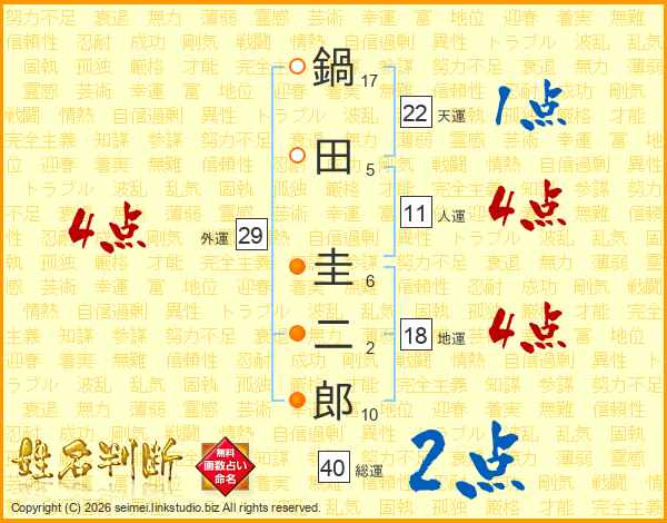 鍋田圭二郎さんの人運は11画の4点!