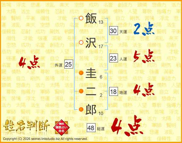 飯沢圭二郎さんの総運は48画の4点!