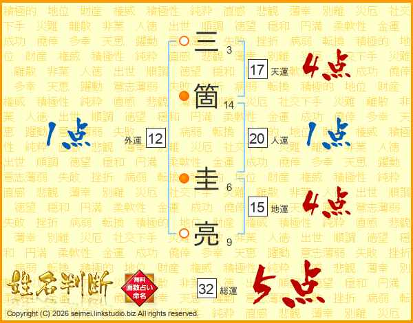 三箇圭亮さんの総運は32画の5点!