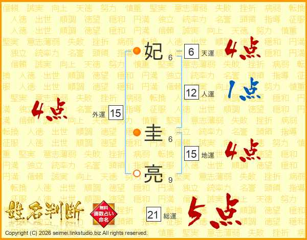 妃圭亮さんの総運は21画の5点!