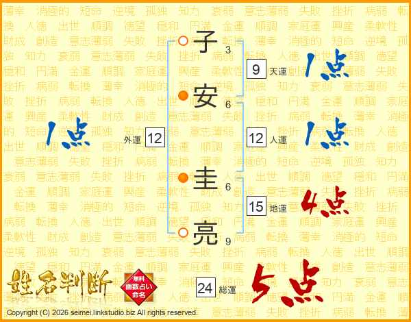 子安圭亮さんの総運は24画の5点!