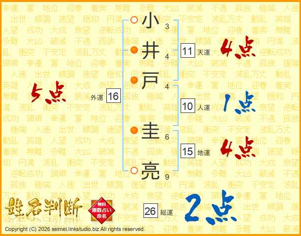 小(3画)井(4画)戸(4画) 圭(6画)亮(9画)