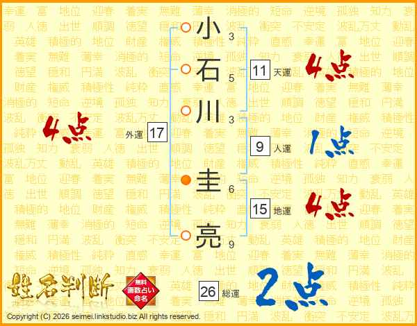 小石川圭亮さんの総運は26画の2点!