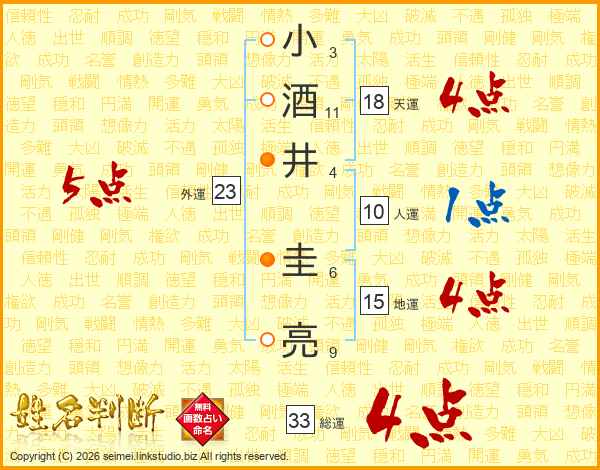 小酒井圭亮さんの総運は33画の4点!