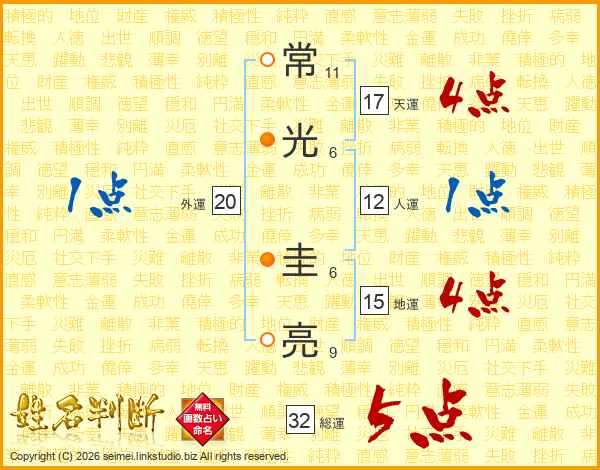 常光圭亮さんの総運は32画の5点!