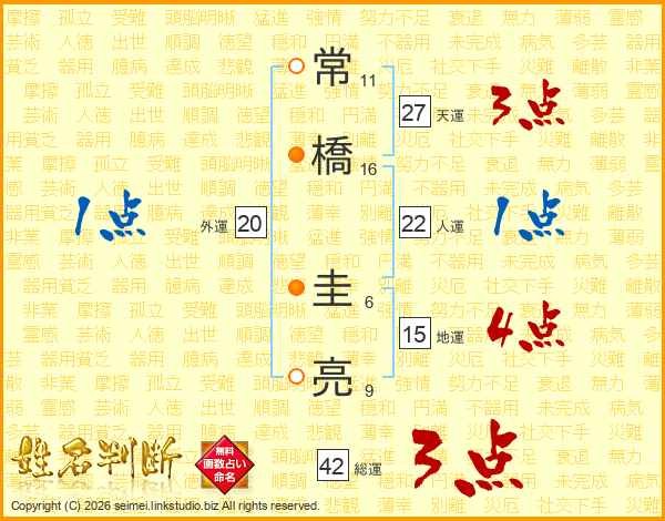 常橋圭亮さんの天運は27画の3点!