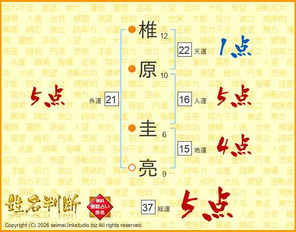 椎原圭亮さんの総運は37画の5点!