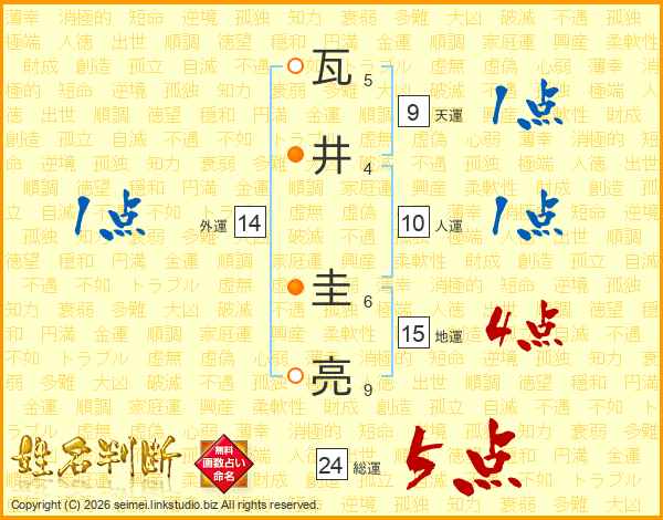 瓦井圭亮さんの総運は24画の5点!