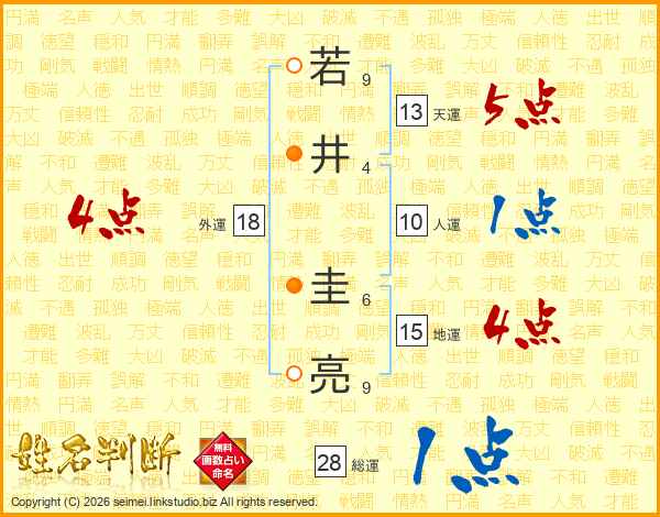 若井圭亮さんの総運は28画の1点!