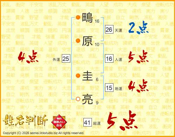 鴫原圭亮さんの天運は26画の2点!