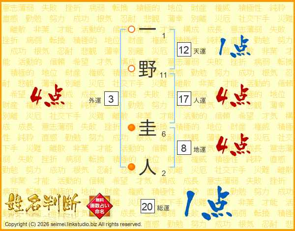 一野圭人さんの総運は20画の1点!