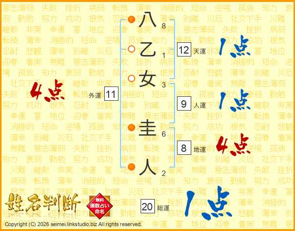 八乙女圭人さんの総運は20画の1点!