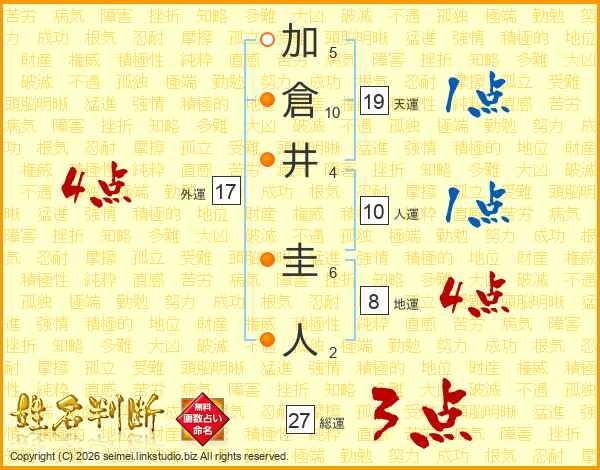 加(5画)倉(10画)井(4画) 圭(6画)人(2画)