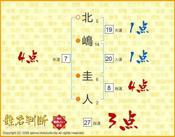 北嶋圭人さんの人運は20画の1点!
