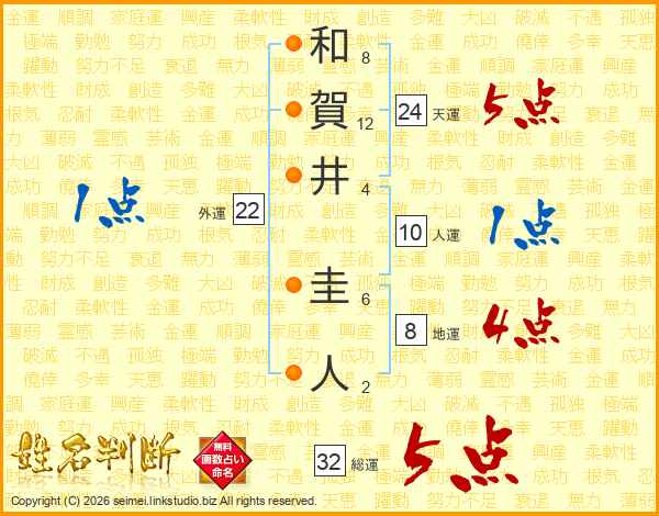 和賀井圭人さんの天運は24画の5点!