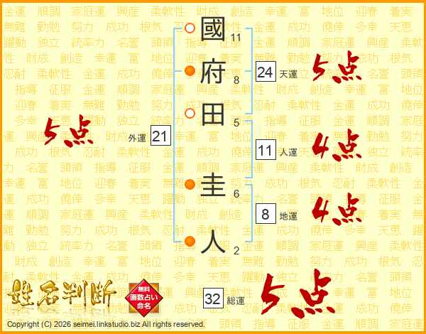國府田圭人さんの総運は32画の5点!