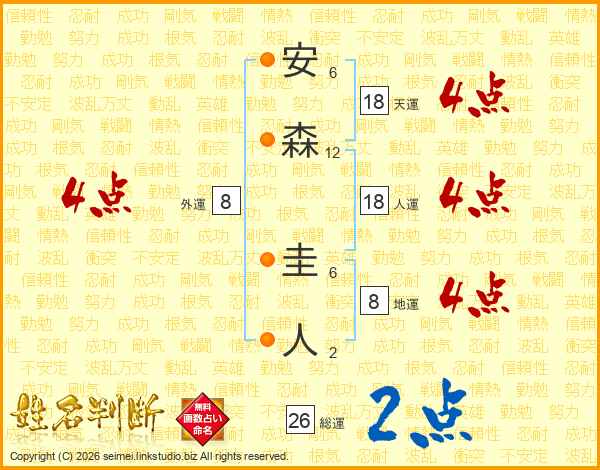 安森圭人さんの天運は18画の4点!