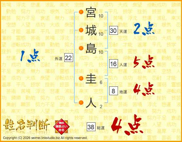 宮城島圭人さんの総運は38画の4点!