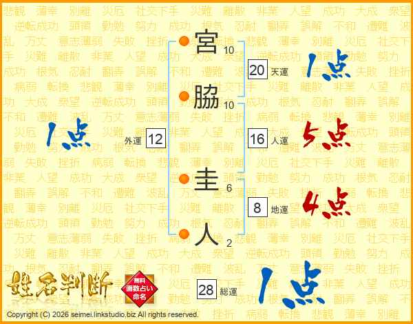 宮(10画)脇(10画) 圭(6画)人(2画)