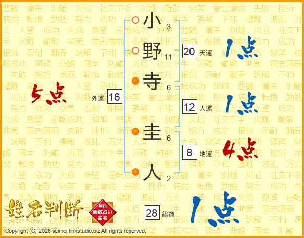 小野寺圭人さんの総運は28画の1点!