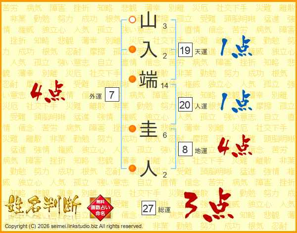 山(3画)入(2画)端(14画) 圭(6画)人(2画)
