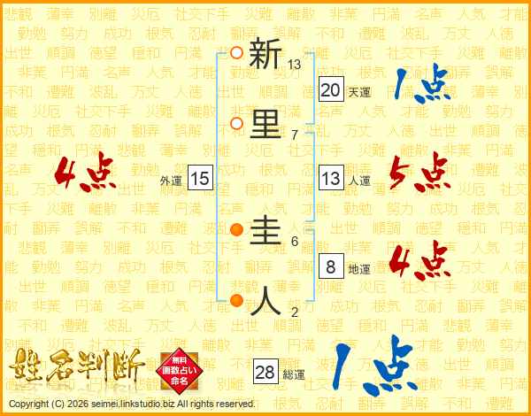 新里圭人さんの総運は28画の1点!