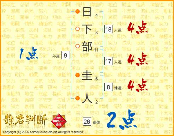 日下部圭人さんの総運は26画の2点!