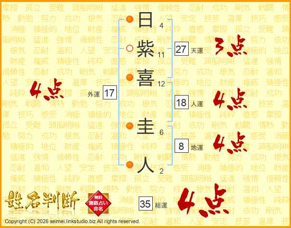 日紫喜圭人さんの総運は35画の4点!