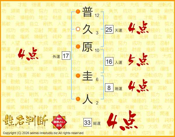 普久原圭人さんの総運は33画の4点!