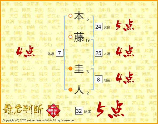 本藤圭人さんの総運は32画の5点!