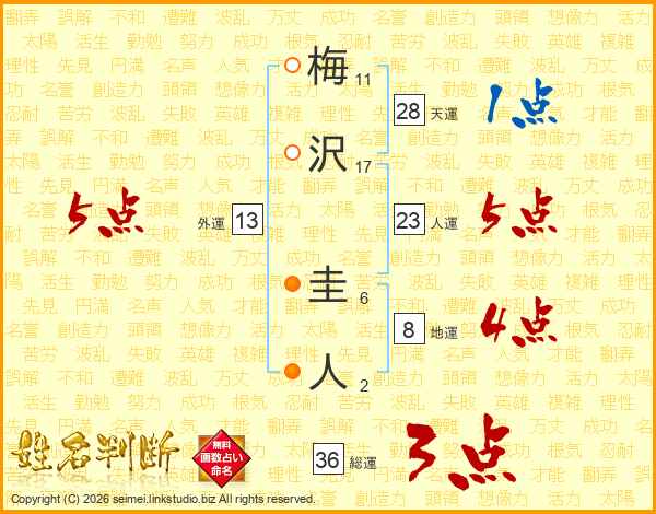 梅沢圭人さんの外運は13画の5点!