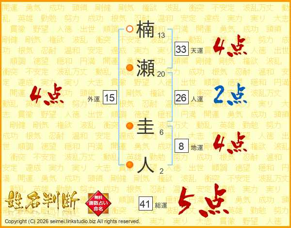 楠瀬圭人さんの総運は41画の5点!