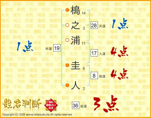 槝之浦圭人さんの人運は17画の4点!