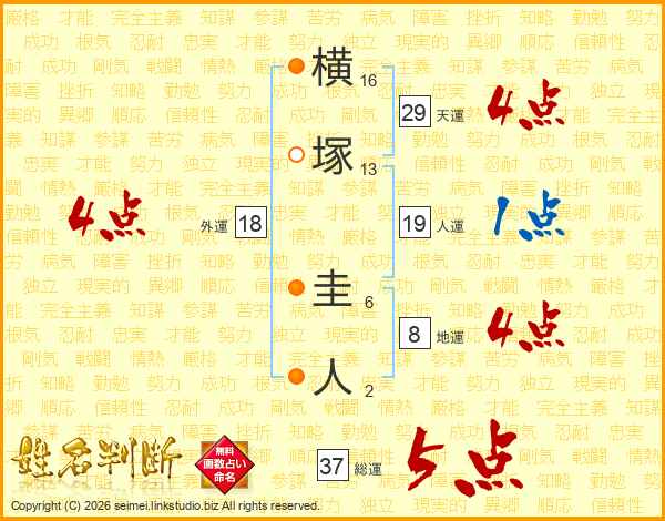 横塚圭人さんの総運は37画の5点!