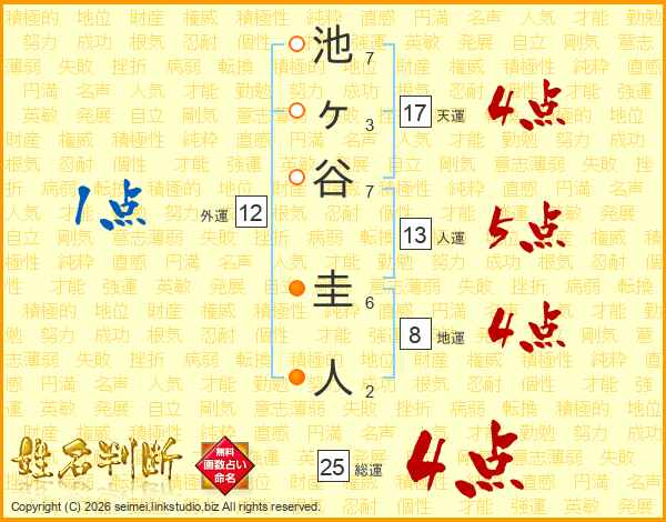 池ヶ谷圭人さんの天運は17画の4点!