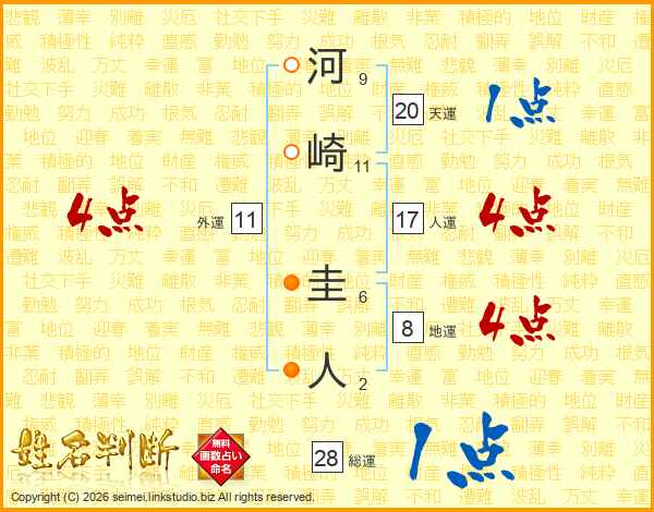 河崎圭人さんの総運は28画の1点!
