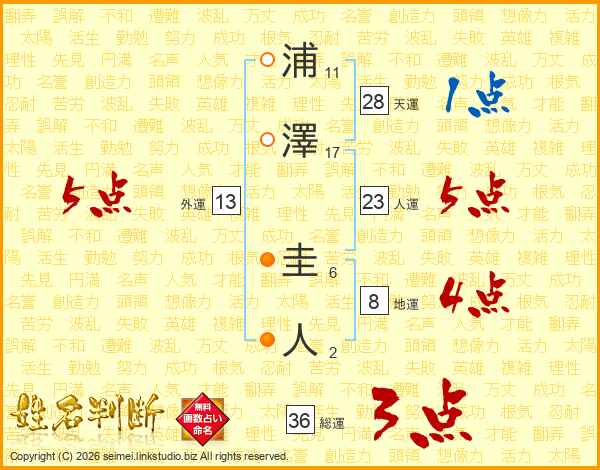 浦澤圭人さんの外運は13画の5点!